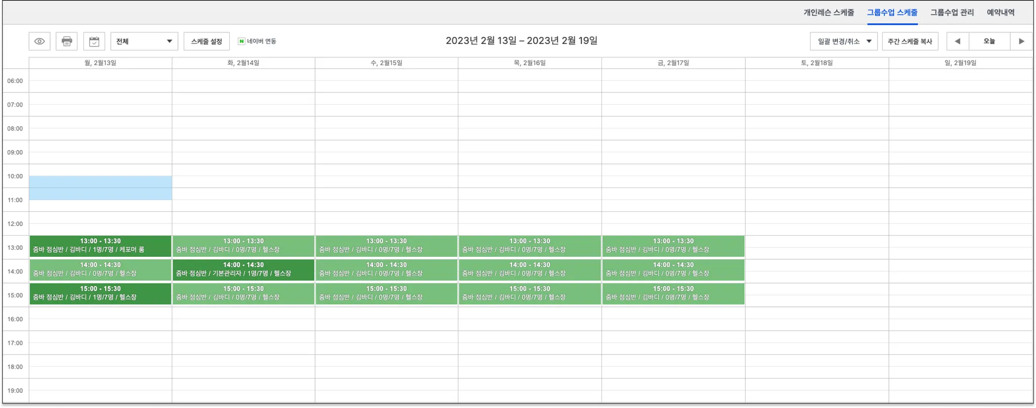 이전에는 스케줄러 > 그룹수업 관리에서 간단하게 추가해서 스케줄을 등록할 때 불러와서 복사하는 기능에 그쳤지만, 이제 연결된 수업들을 모두 같이 관리할 수 있는 기능으로 업그레이드가 되었어요.