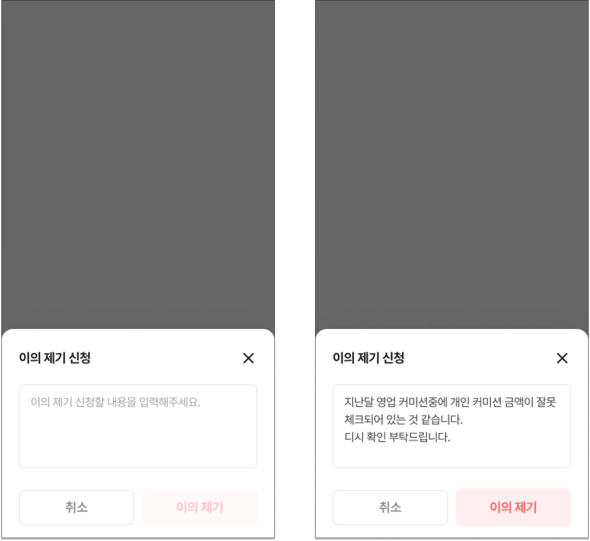 이의 제기는 내역 요청이 올 때마다 발송할 수 있고, 센터에서 강제 확정 시 수정할 수 없어요.