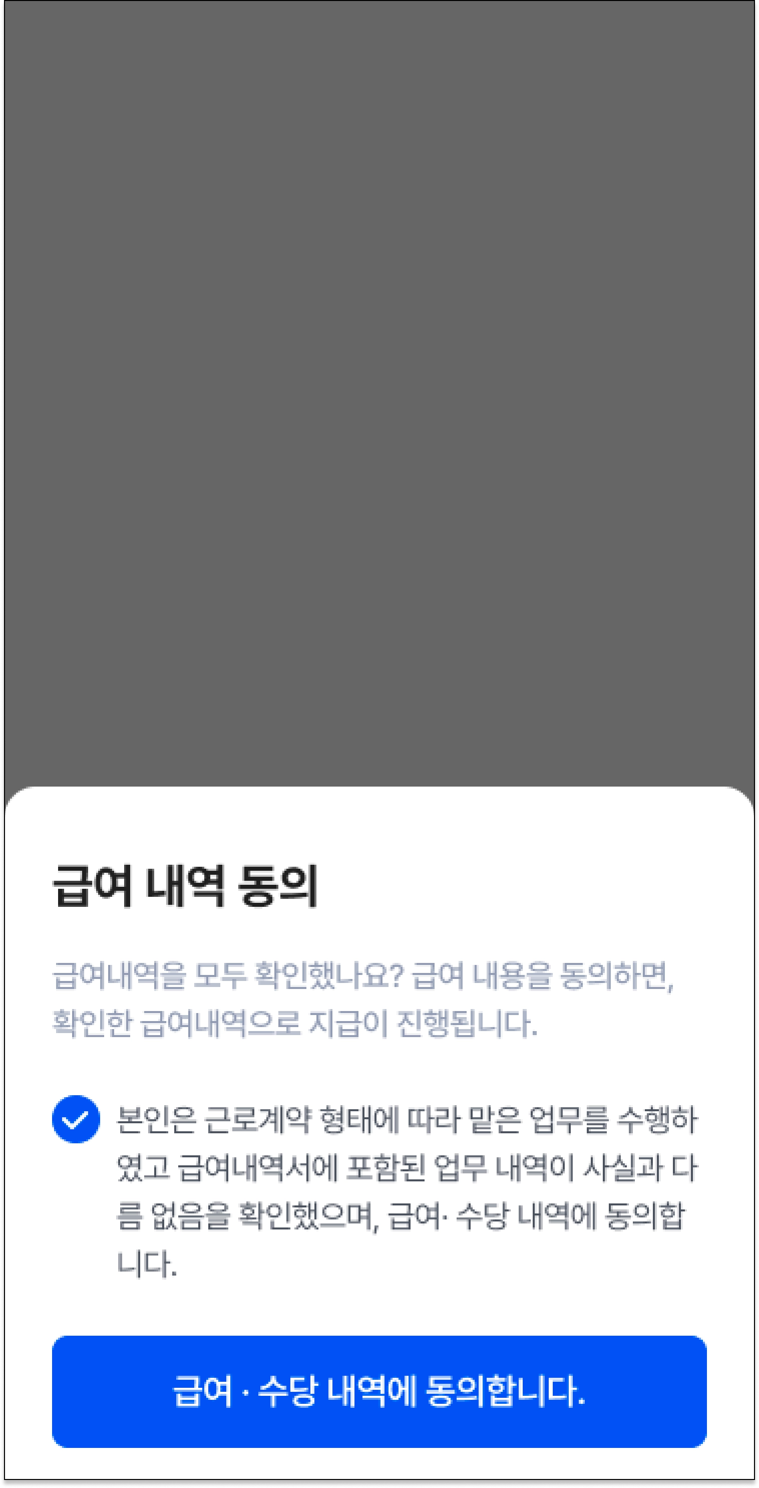 내역이 맞다면, 내역 동의를 진행해주세요. 해당 내역으로 급여가 확정됩니다.