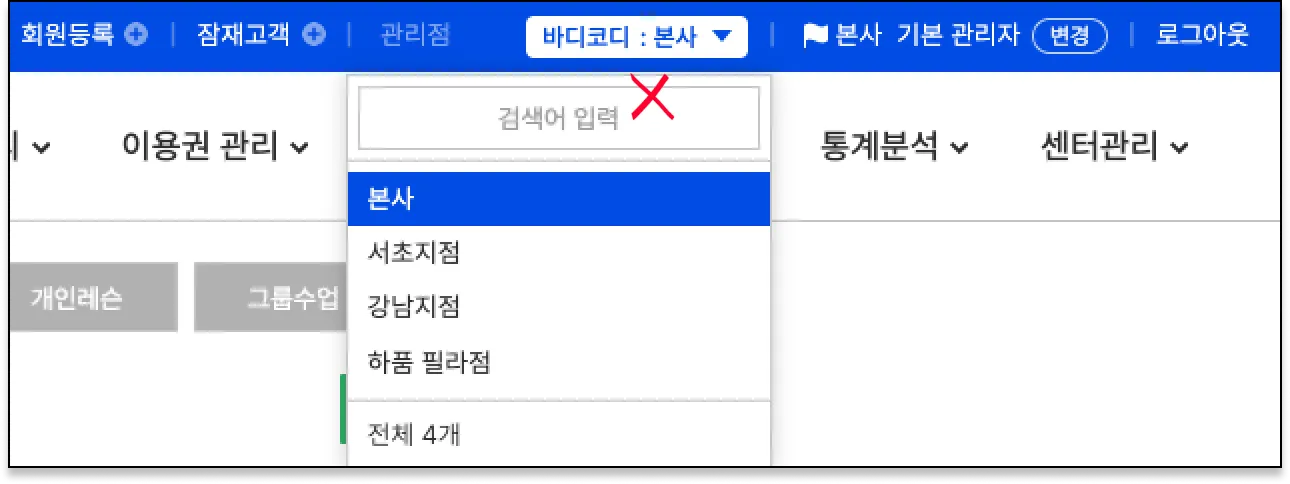 본사로 선택 후 결제 요청을 보내면 안되요. 꼭 지점을 선택해주세요.