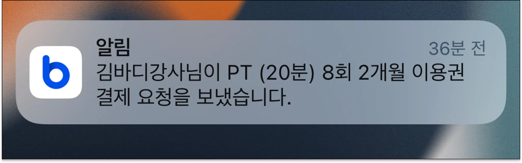 센터에서 결제 요청을 보내면 회원은 결제 요청 푸시 알림을 받아요.