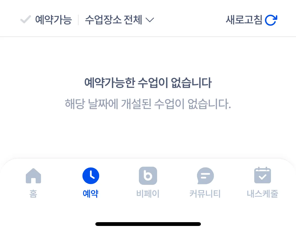 회원앱에서 수업 스케줄이 뜨지 않는다면, 아래 상황이 아닌지 확인해주세요!