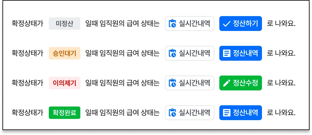 급여 정산은 아래 2곳에서 확정할 수 있어요.