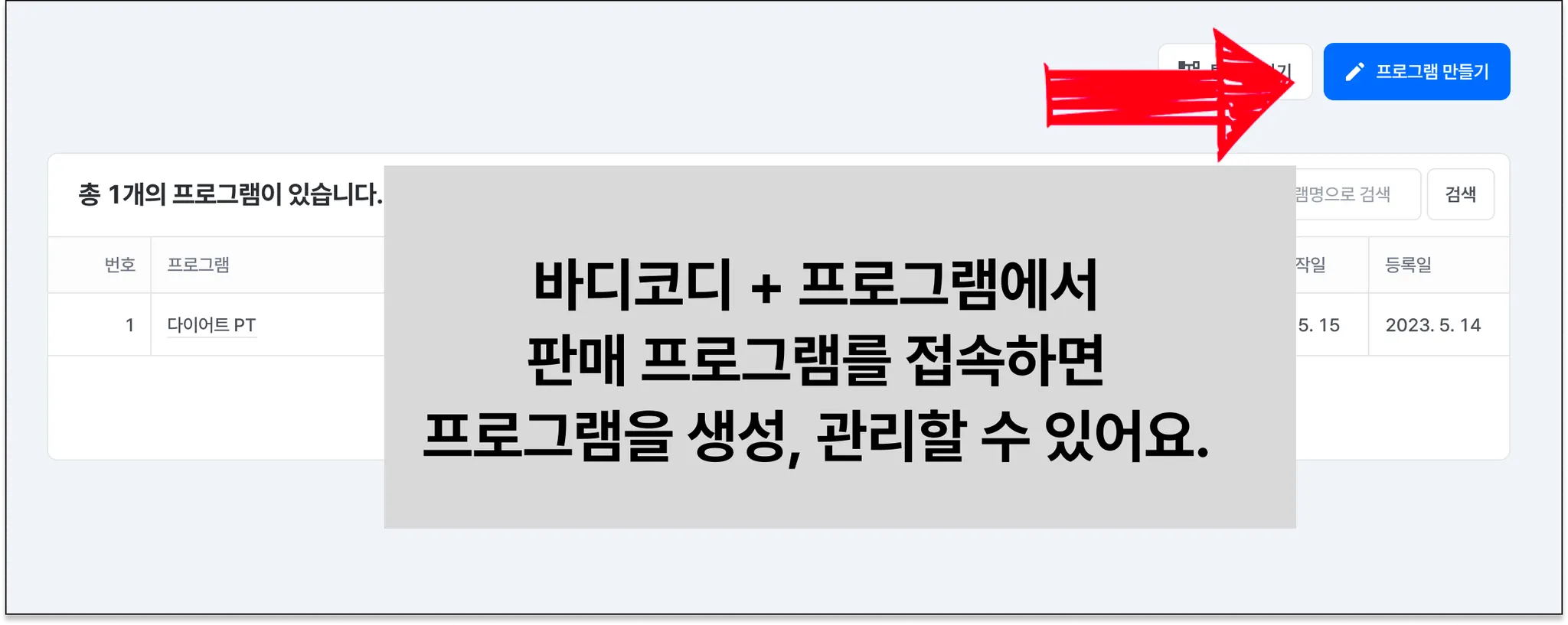 이미 비페이를 바디코디 회원앱에서 판매하고 있다면, 프로그램에도 판매할 수 있답니다!