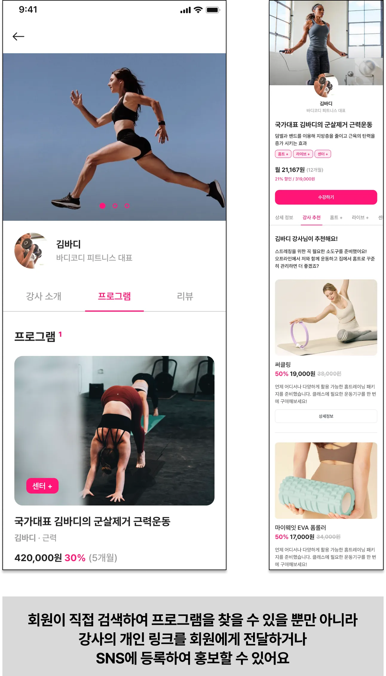 바디코디 플러스에선, 강사의 개인 링크와 프로그램 구매 링크를 모두 제공합니다.