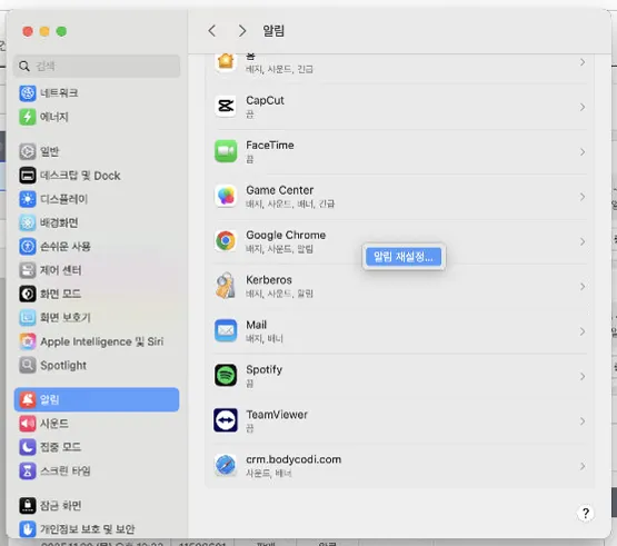 컴퓨터 내 시스템 설정 > 알림 재설정
