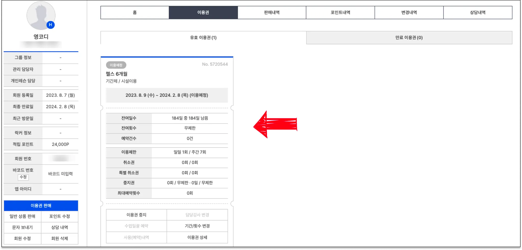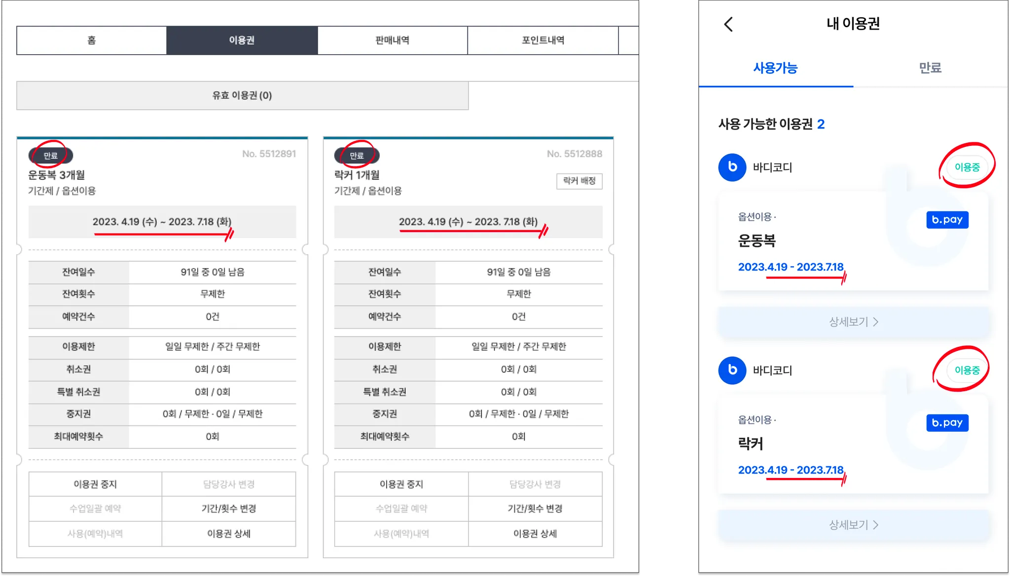 실제 만료된 이용권이지만, 회원앱에서 이용중으로 나오는 오류가 있었어요.