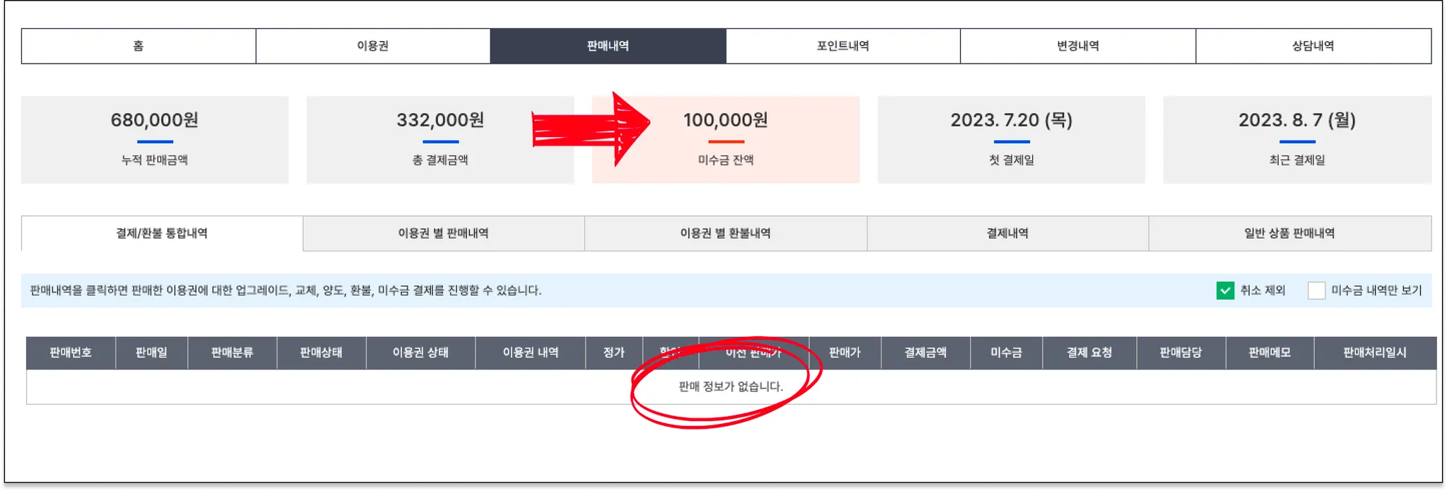 3. 회원 판매내역에 미수금 내역이 보이지 않는 현상 수정