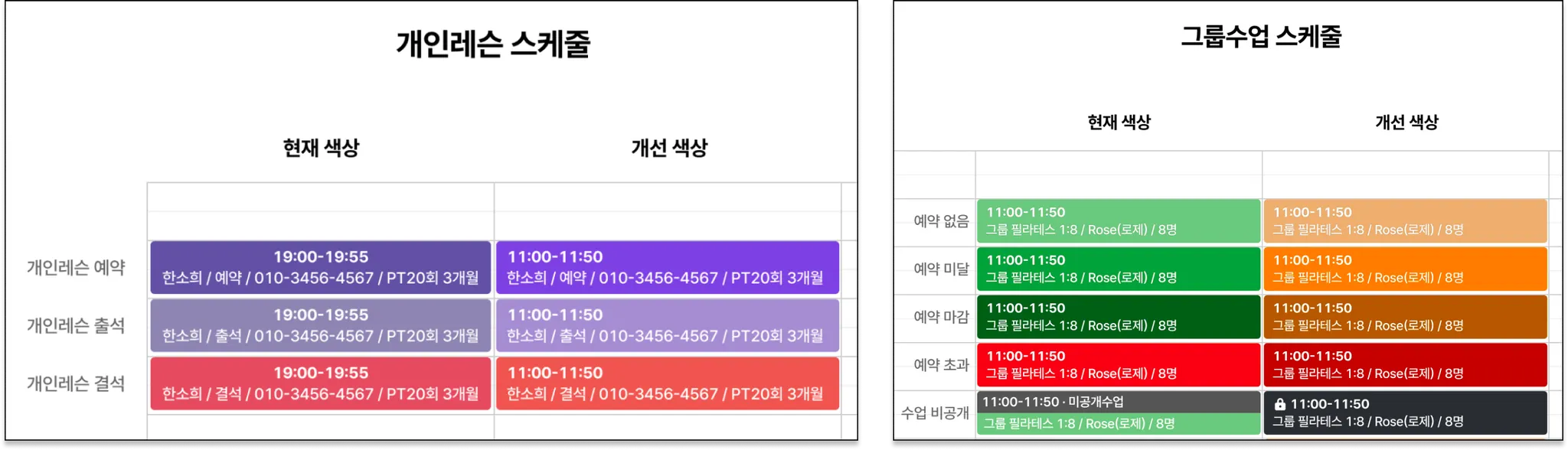스케줄의 시간과 내용에 가독성을 높이고, 시인성을 높이기 위해 채도를 조정했어요.