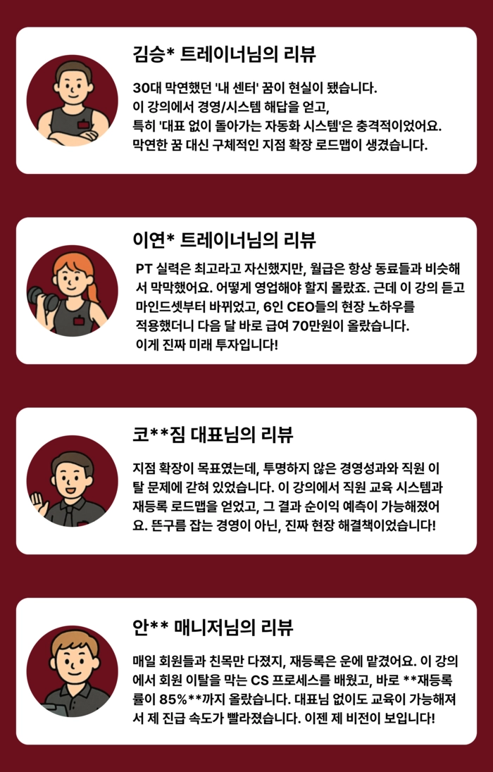 대한민국 피트니스 경영자들을 위한 시간!