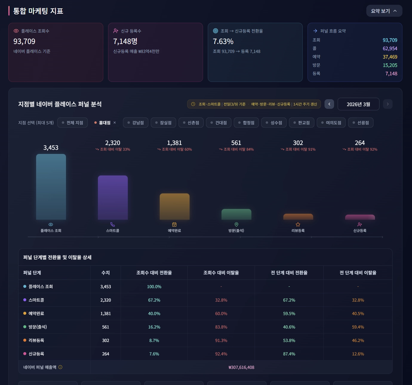 직관적인 매출 그래프와 꼭 필요한 지점 별, 기간 별 비교 데이터