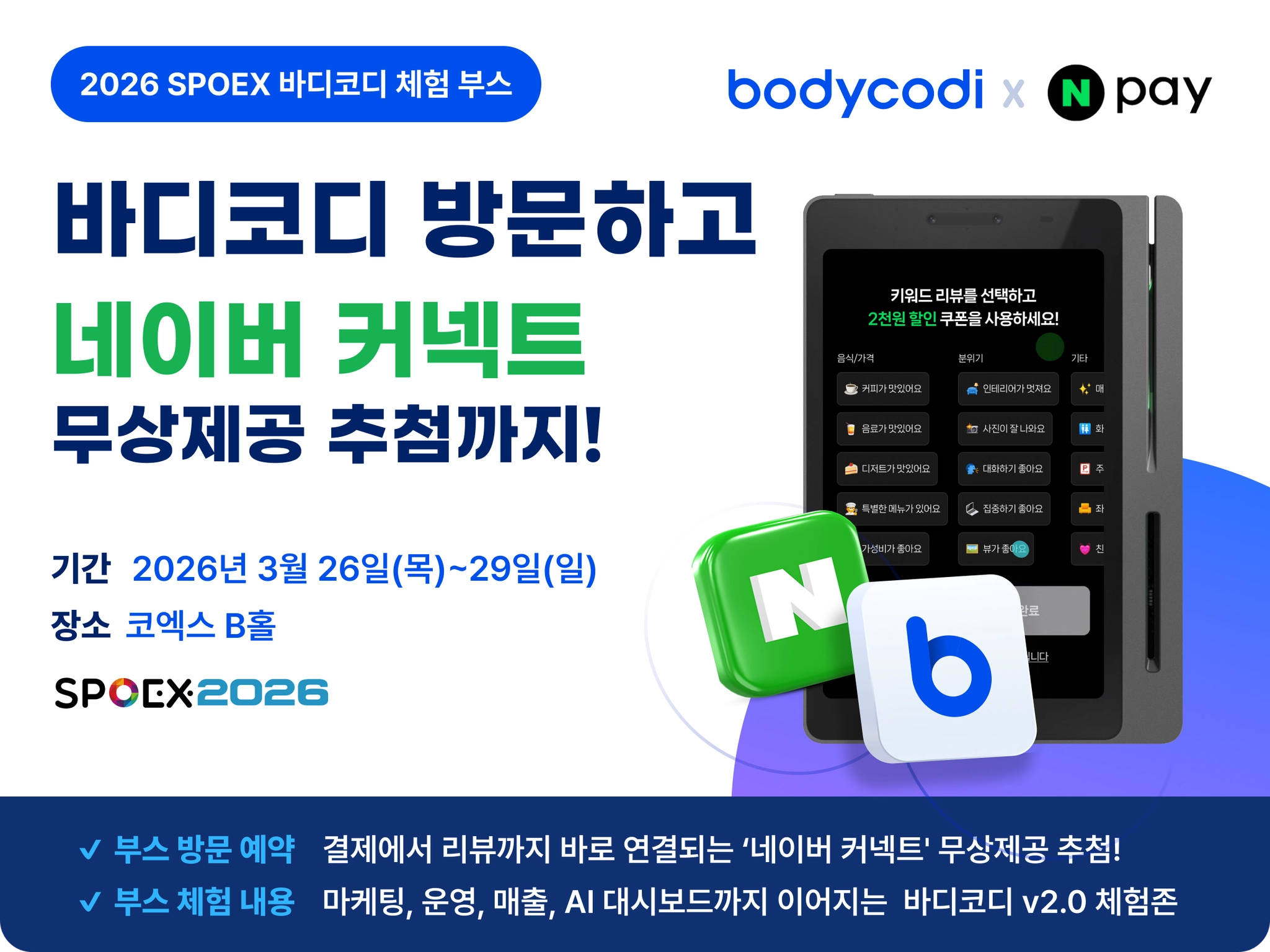 바디코디 부스에 방문하셔서 네이버 연동을 꼭 확인해보세요!