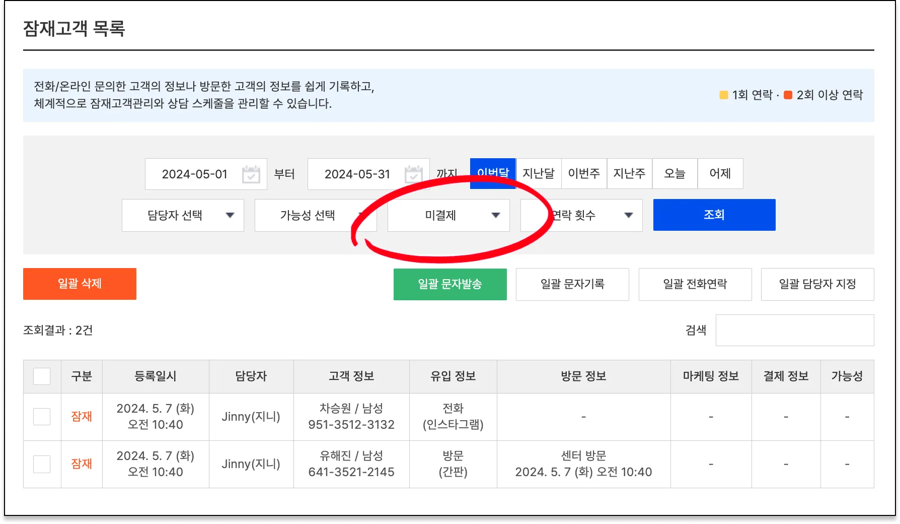 미결제한 잠재고객들만 바로 확인할 수 있어요!