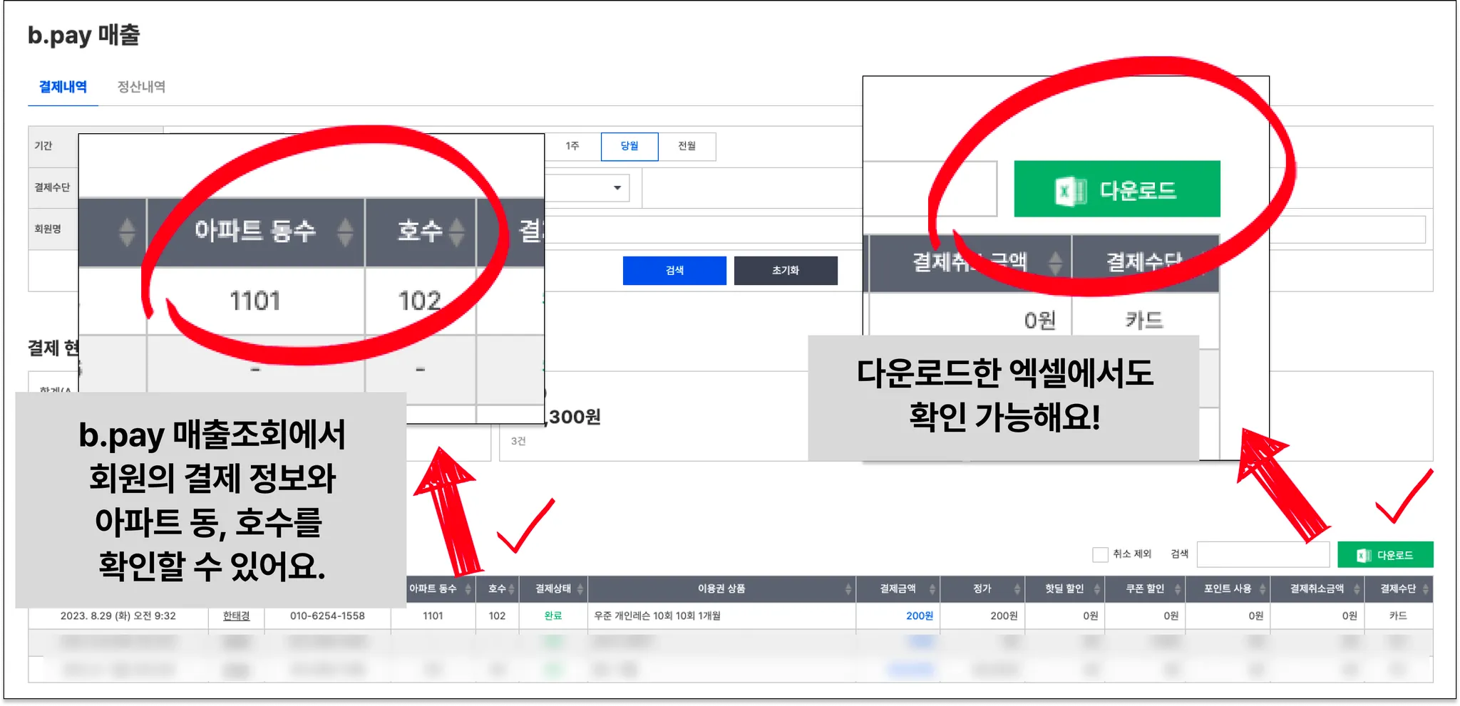 2. b.pay 매출조회에서 아파트 동, 호수 확인하기