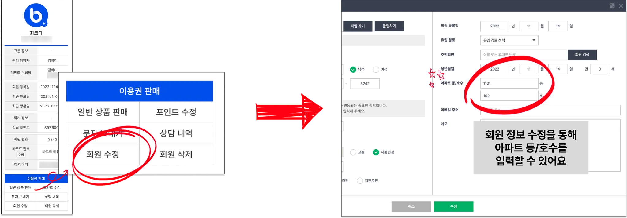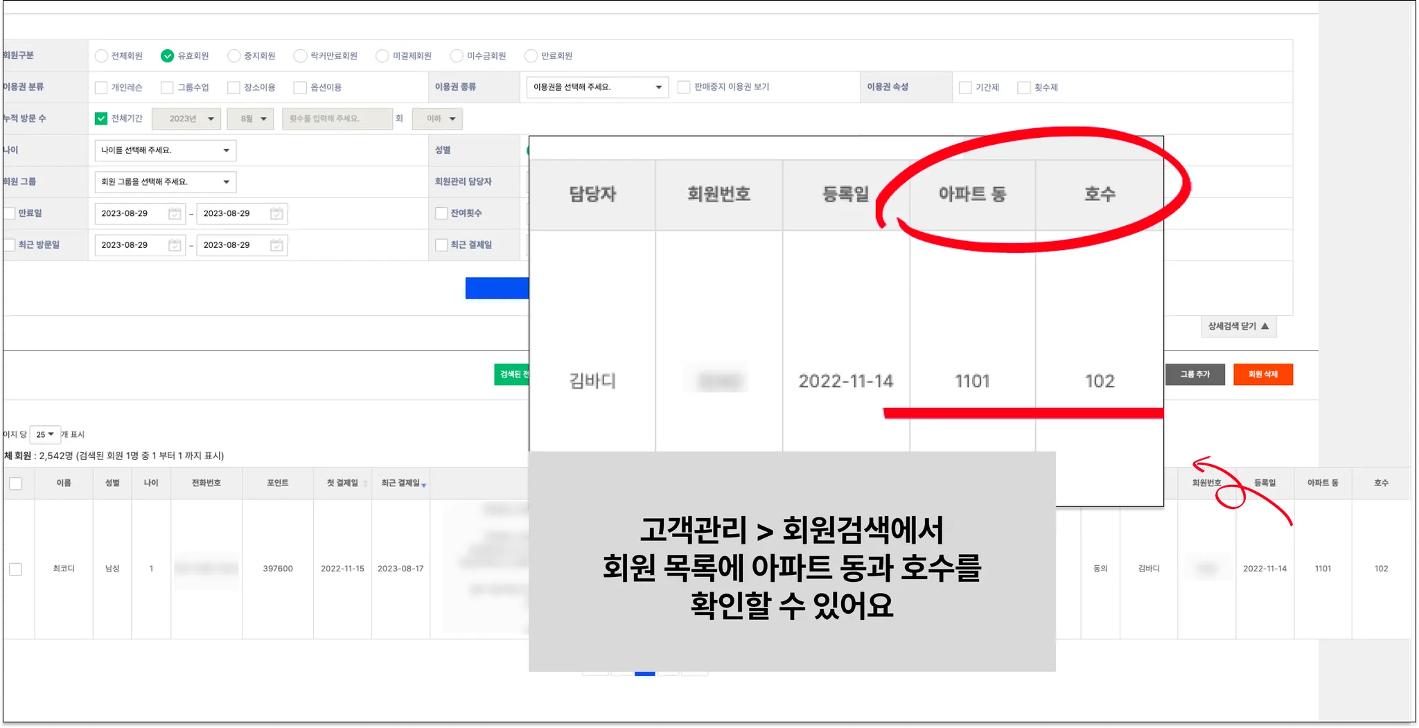 3. 회원 검색 및 조회 시 아파트 동, 호수 확인하기