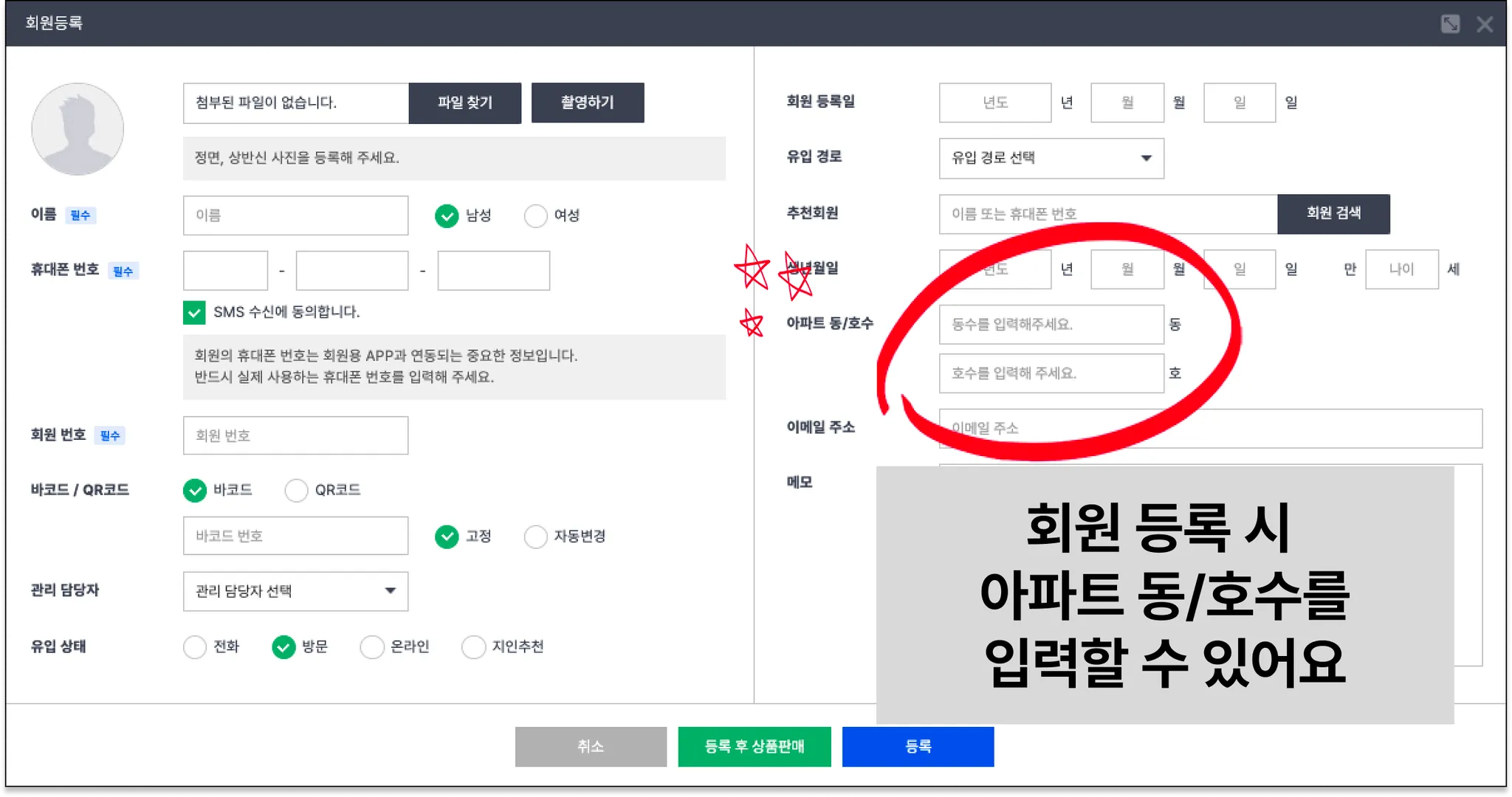 1. 회원 정보에 아파트 동, 호수 입력하기