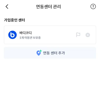 앱 다시 실행 > "센터명" 검색하여 연동 신청