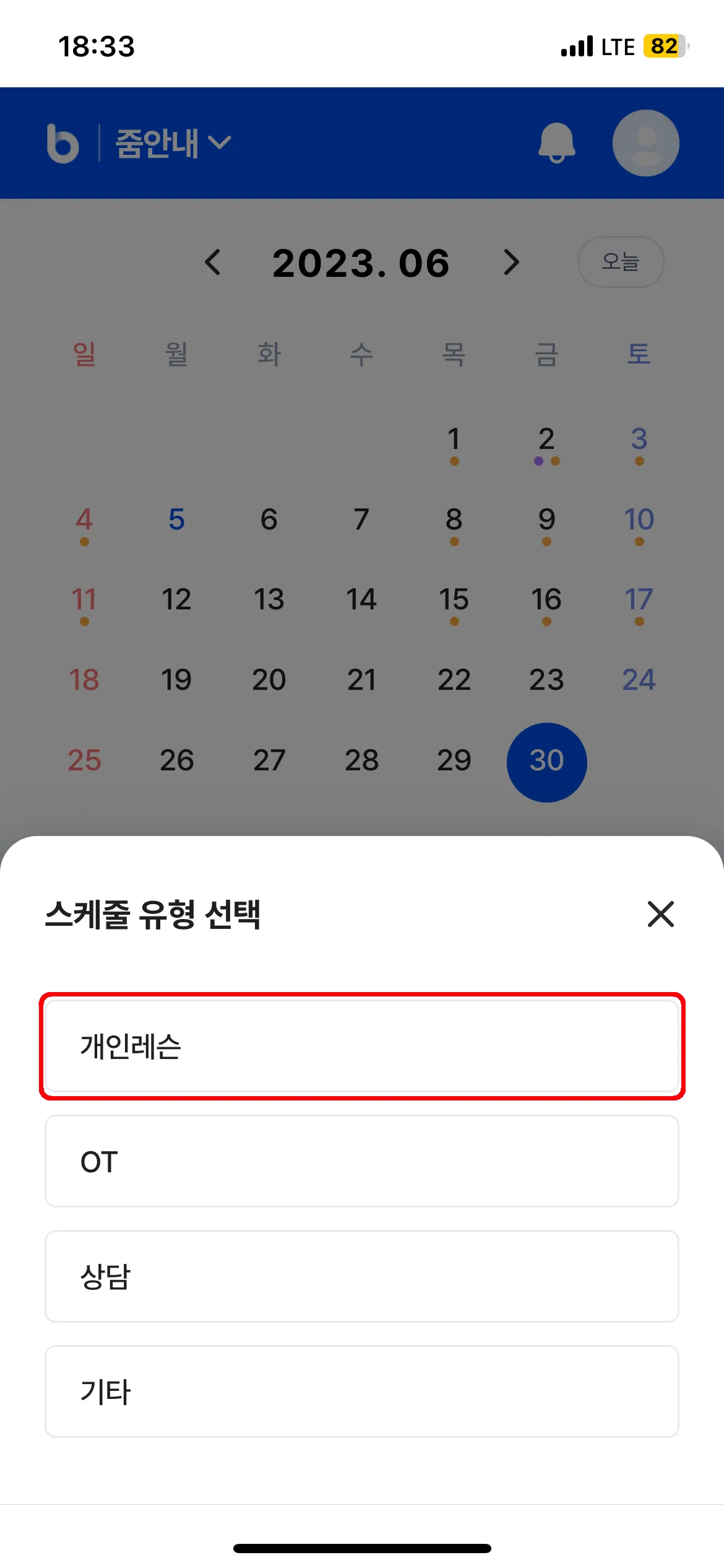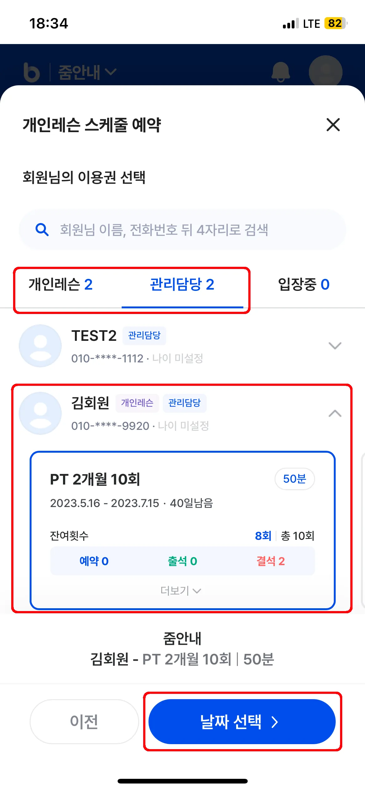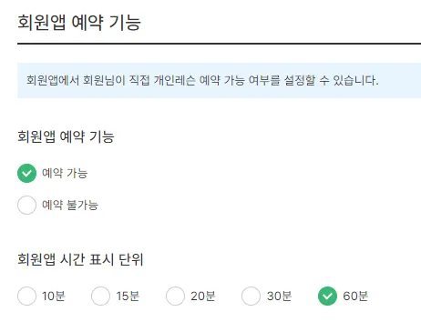 우선 회원님께서 직접 개인레슨을 예약할 수 있도록 할건지 정책 설정이 필요합니다.