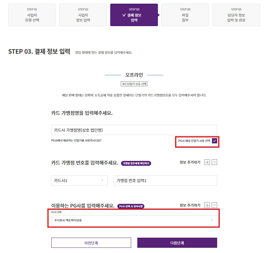 4 . STEP 03. 결제 정보 입력을 합니다.