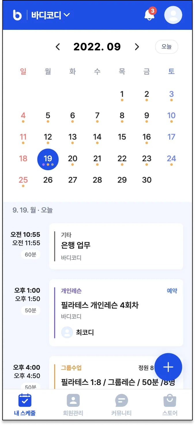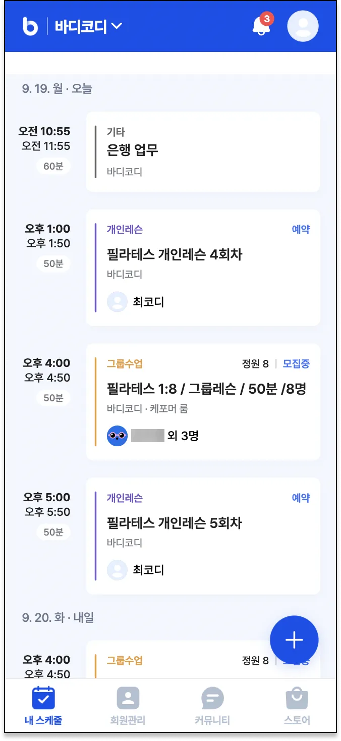 수업을 예약하거나, 출/결석한 회원의 목록과 상태를 확인할 수 있습니다.