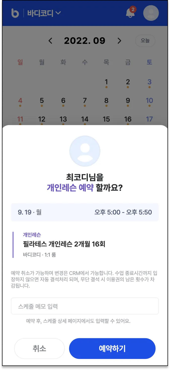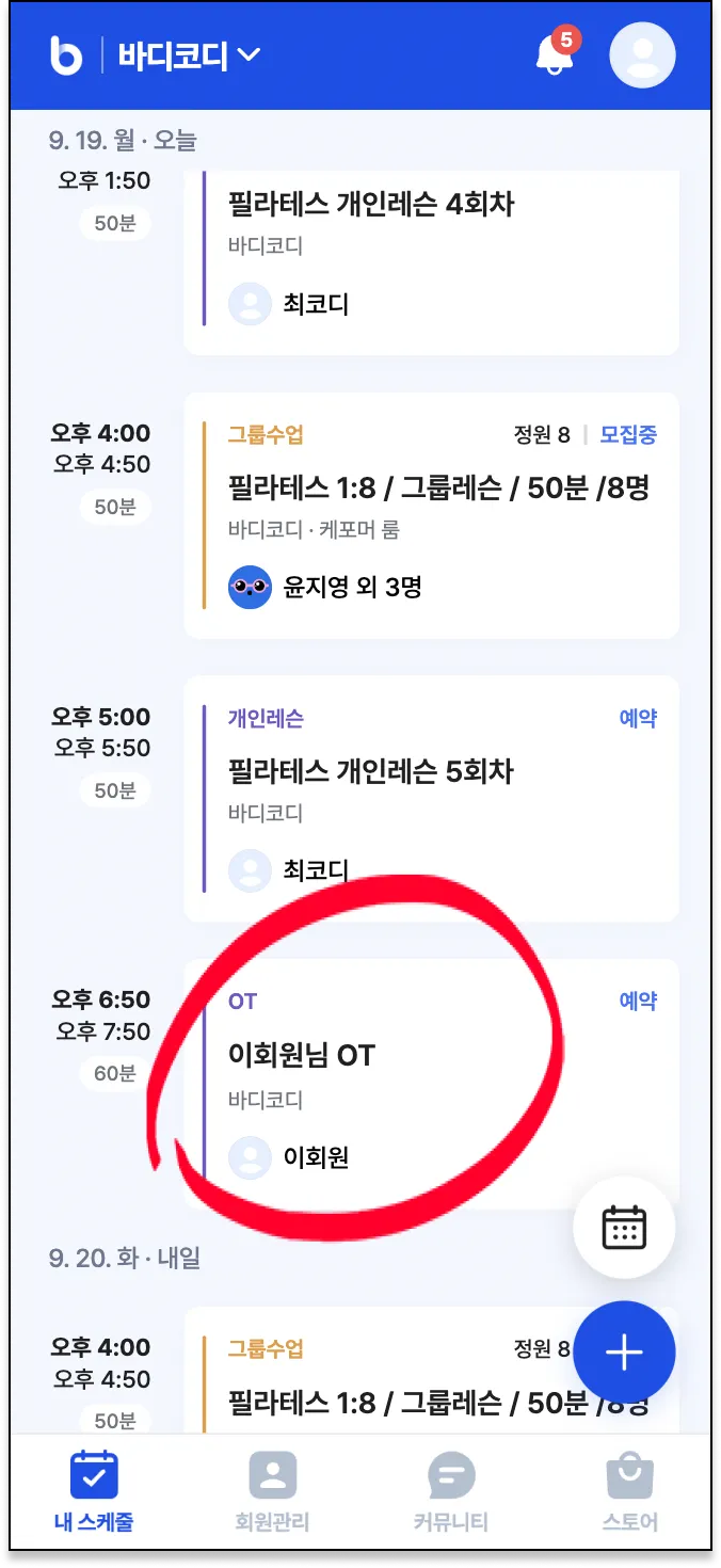 강사앱에선, OT와 상담예약까지 예약할 수 있어요!
