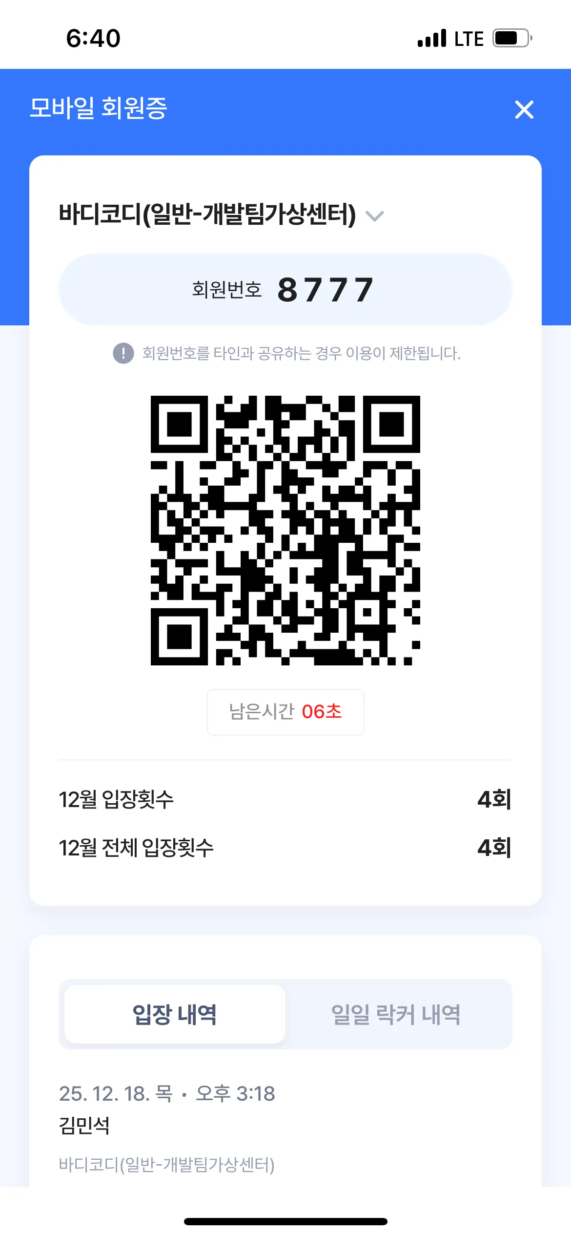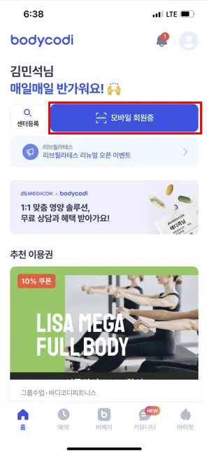 판매 완료 후, 회원앱 접속 > 모바일 회원증 클릭