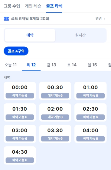 회원앱에서는 이용 가능한 시간대만 예약 및 실시간 타석 배정이 가능해요.