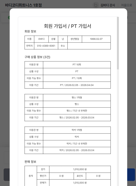 태블릿 PC 하나로 이용권 판매 + 전자계약서 서명 + 결제까지 전부 한 번에, 간편하게 처리하세요