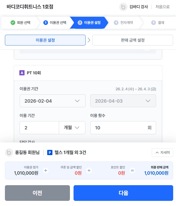 단말기 연동을 원하신다면 바디코디 고객센터 로 문의해주세요!