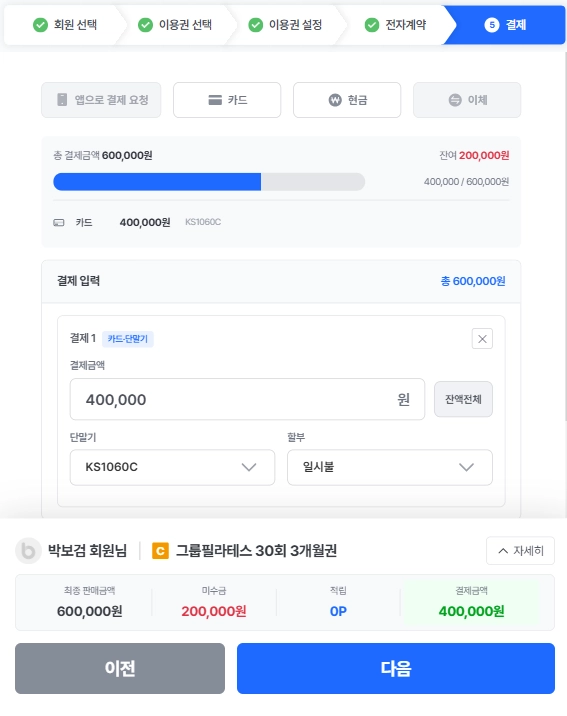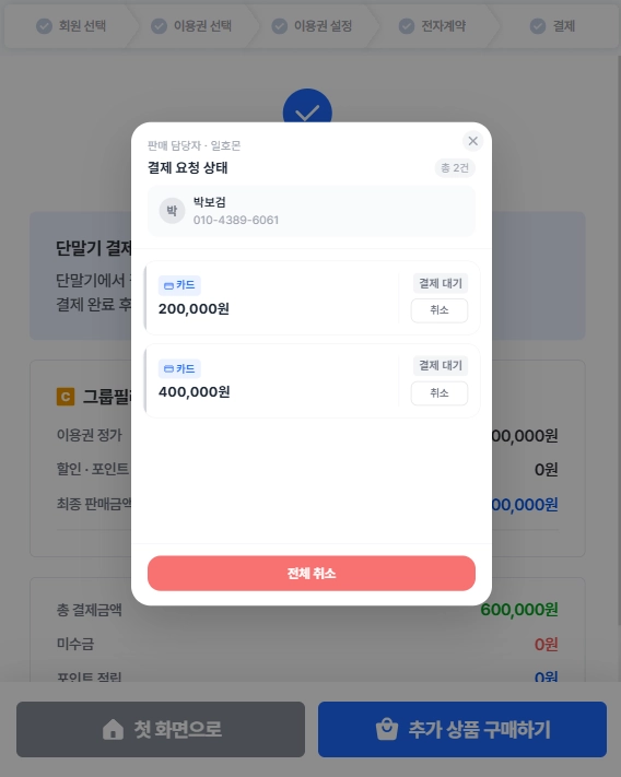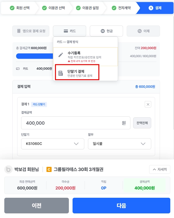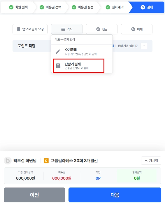 4) 카드리더기에 카드를 꽂고 순차적으로 결제해주시면 끝!