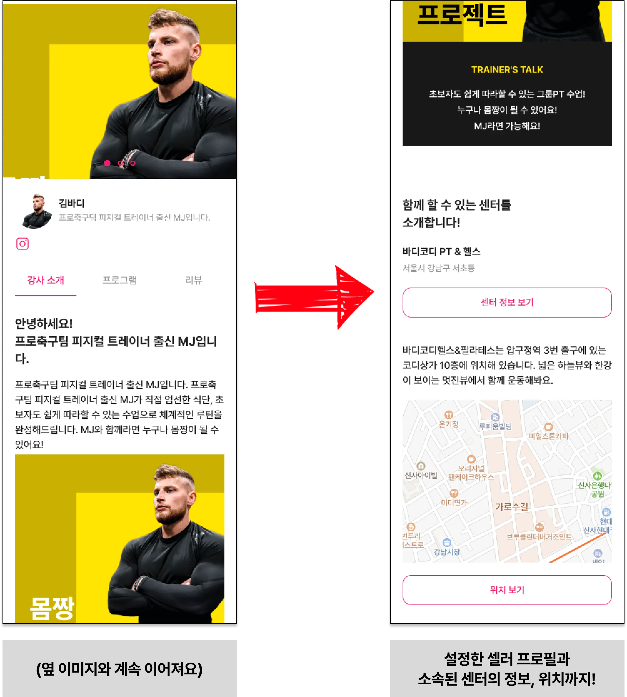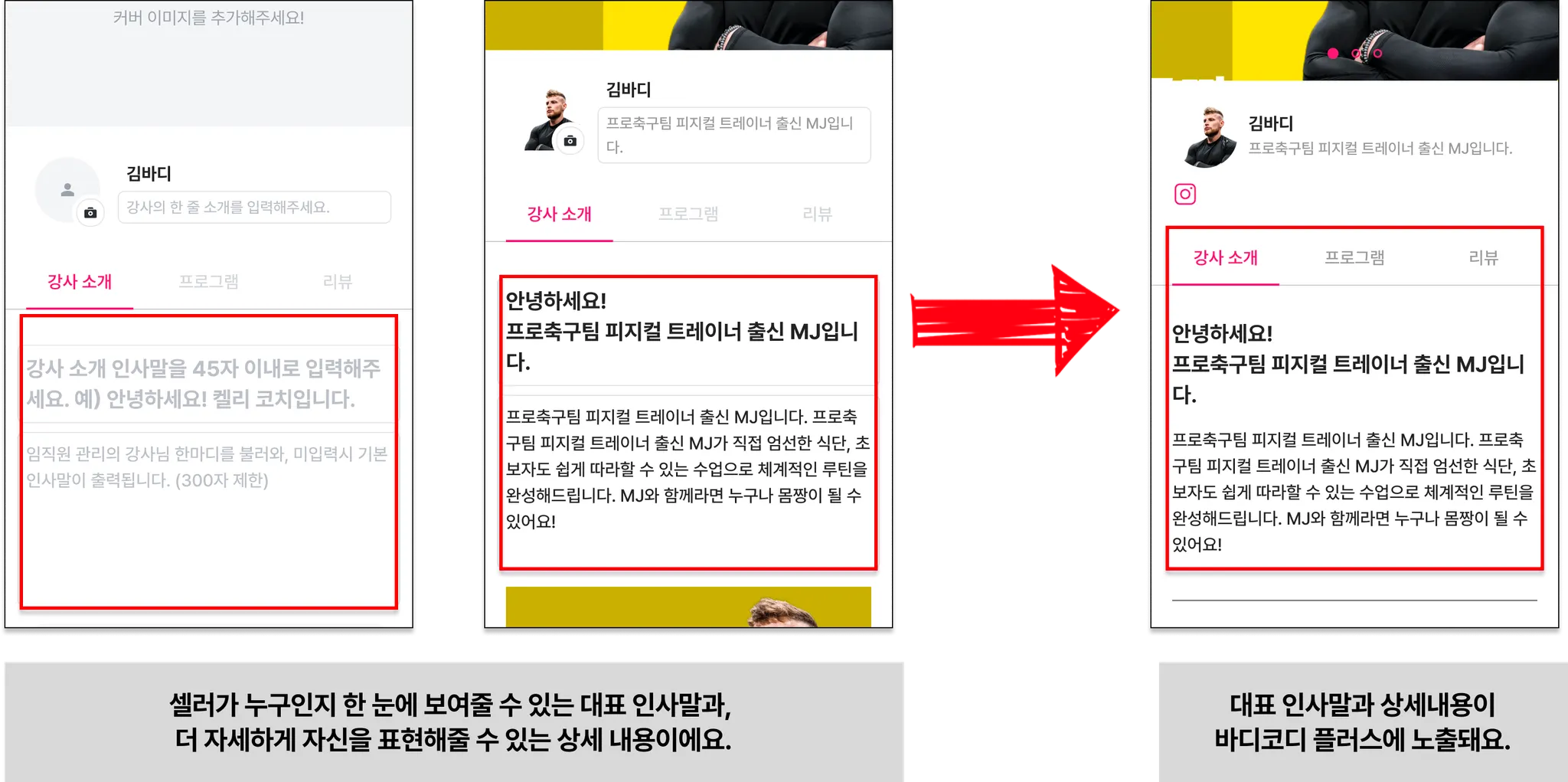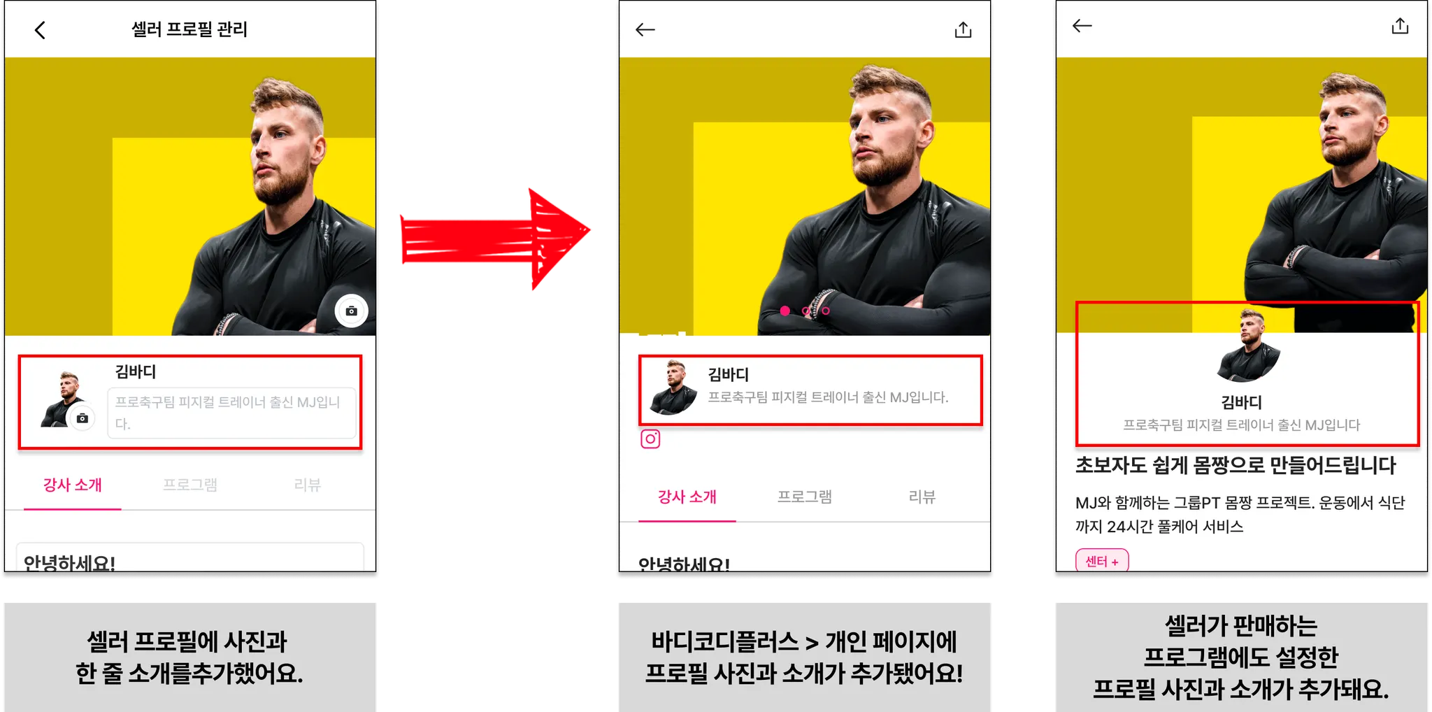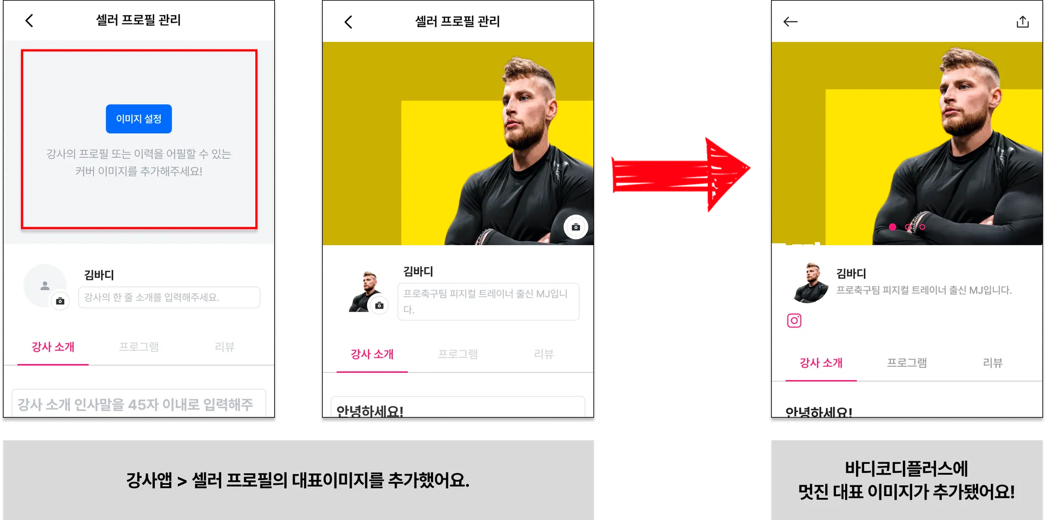 바디코디 플러스에서 구매할 회원은 이 화면에서 등록한 프로필을 보게 될 거에요!