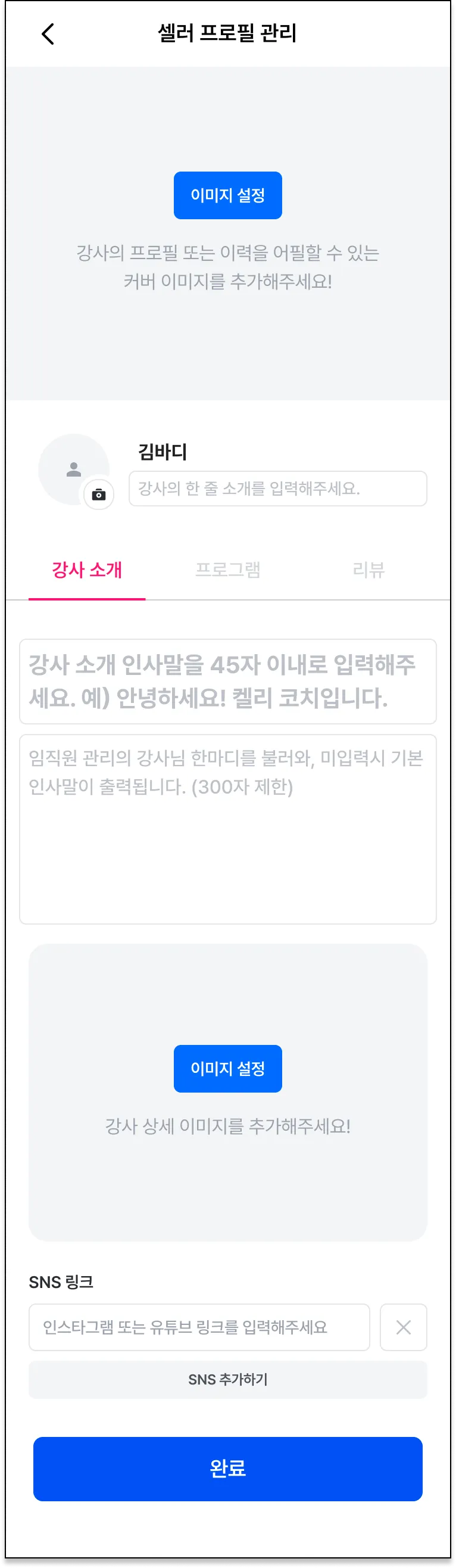 셀러 프로필 설정의 마지막! SNS 링크 추가 기능이에요.