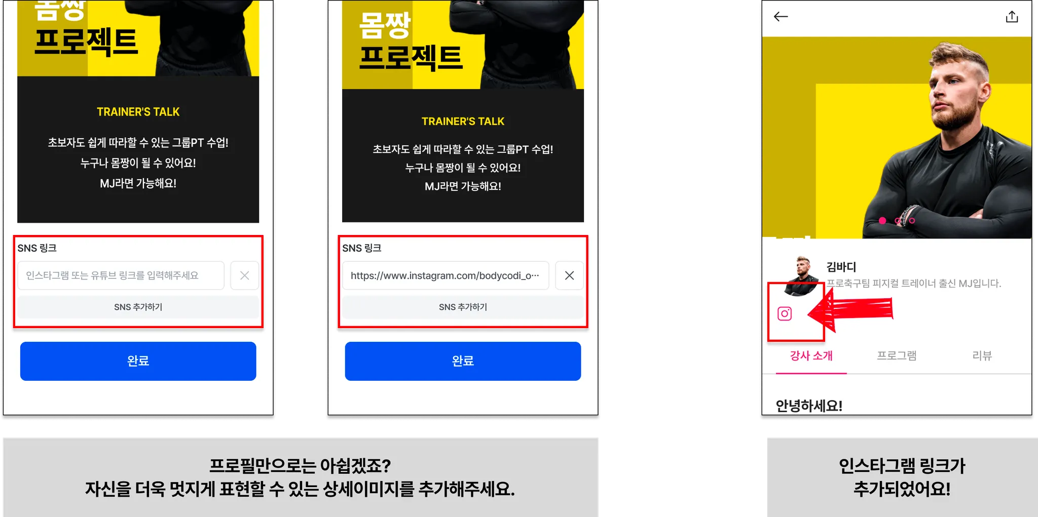 (아직은 인스타그램, 유튜브 링크 추가만 가능해요