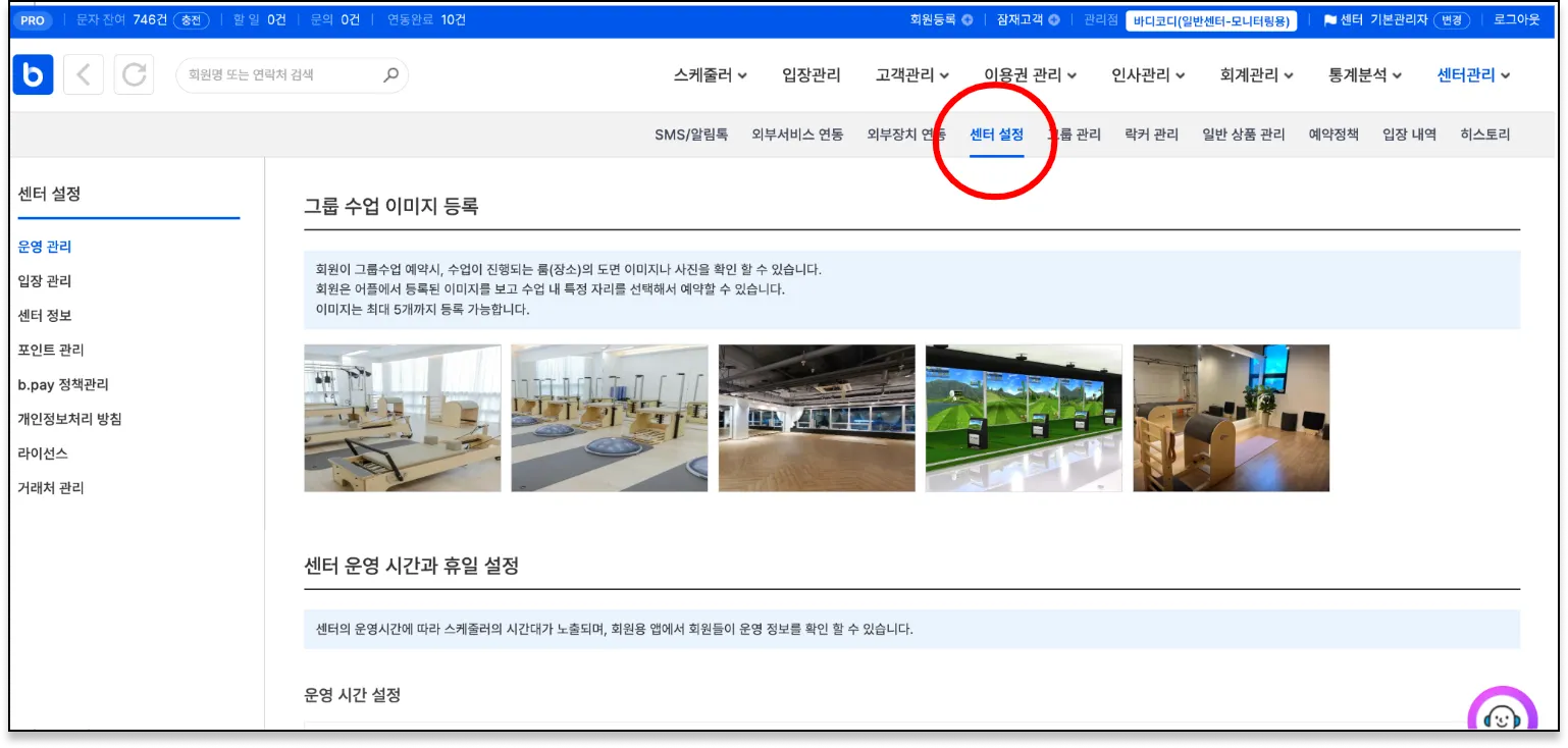 센터관리 > 센터설정 > 운영관리 에서 하실 수 있어요!