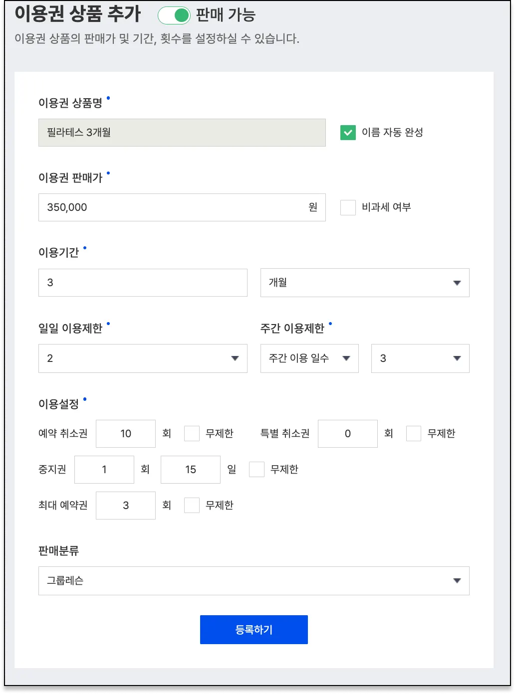 1. 이용권 생성/수정 시 설정 방법