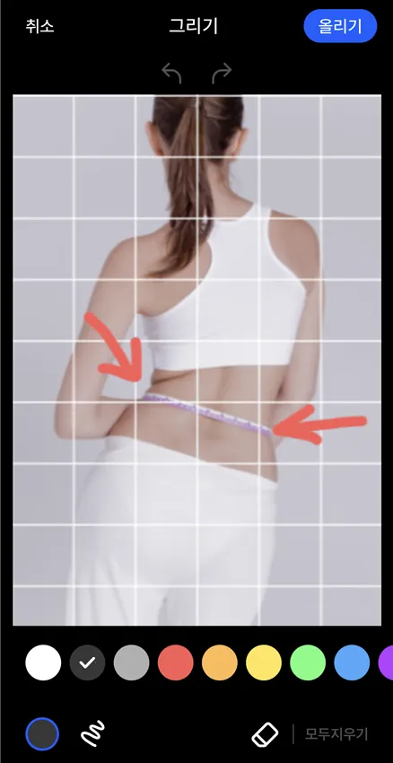 지우개를 누르면 그렸던 선을 삭제할 수 있으니 걱정하지 마세요!
