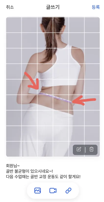 바디코디 앱에서 공유하기에 게시글 관리도 쉽고, 공유한 게시글은 회원별로 검색이 가능하기에 Before & After 확인도 쉬워 회원 맞춤 밀착 케어가 가능하답니다!