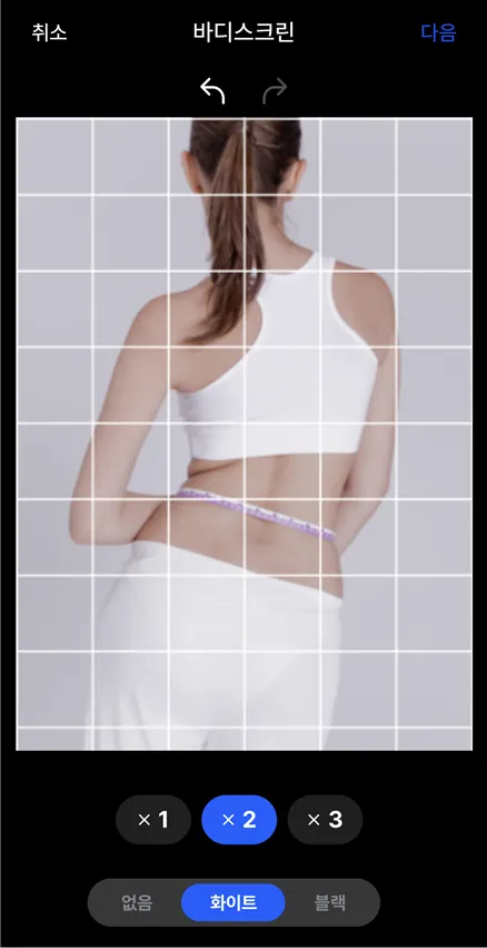 우선, 사진의 비율을 편집하고 바디스크린 색상과 비율을 적용해볼게요!