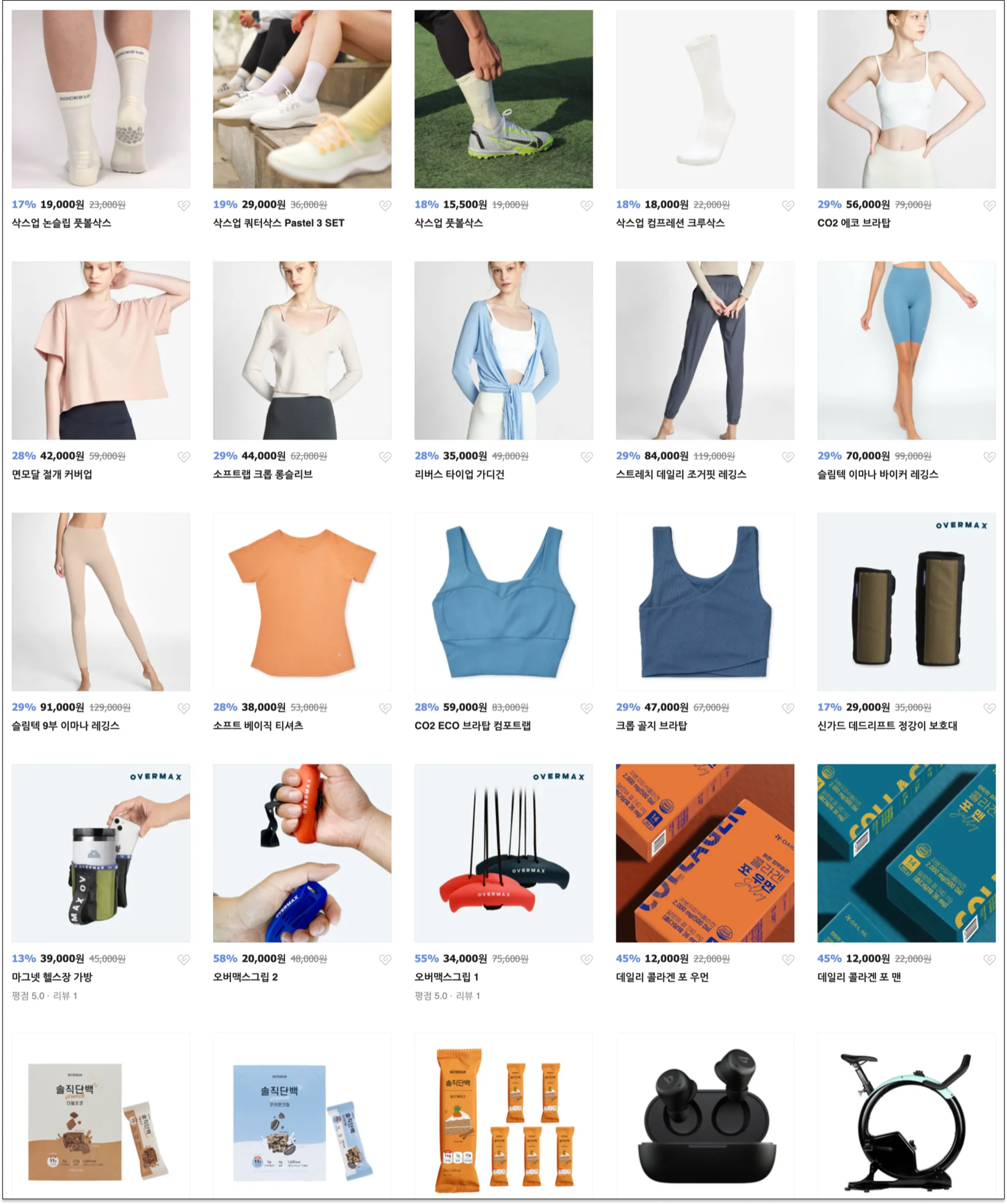 운동기구와 건강식품, 가방, 안전도구, 운동복 등 고퀄리티의 다양한 상품들이 최저가로 계속 추가되고 있어요.