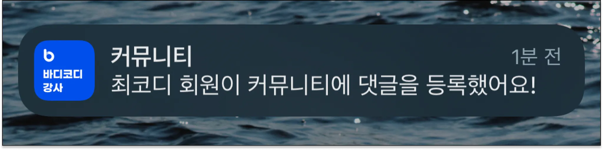 회원이 댓글을 달면 푸시 알림으로 알려줘요.