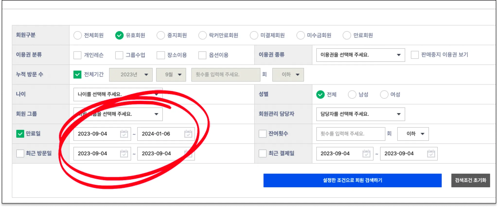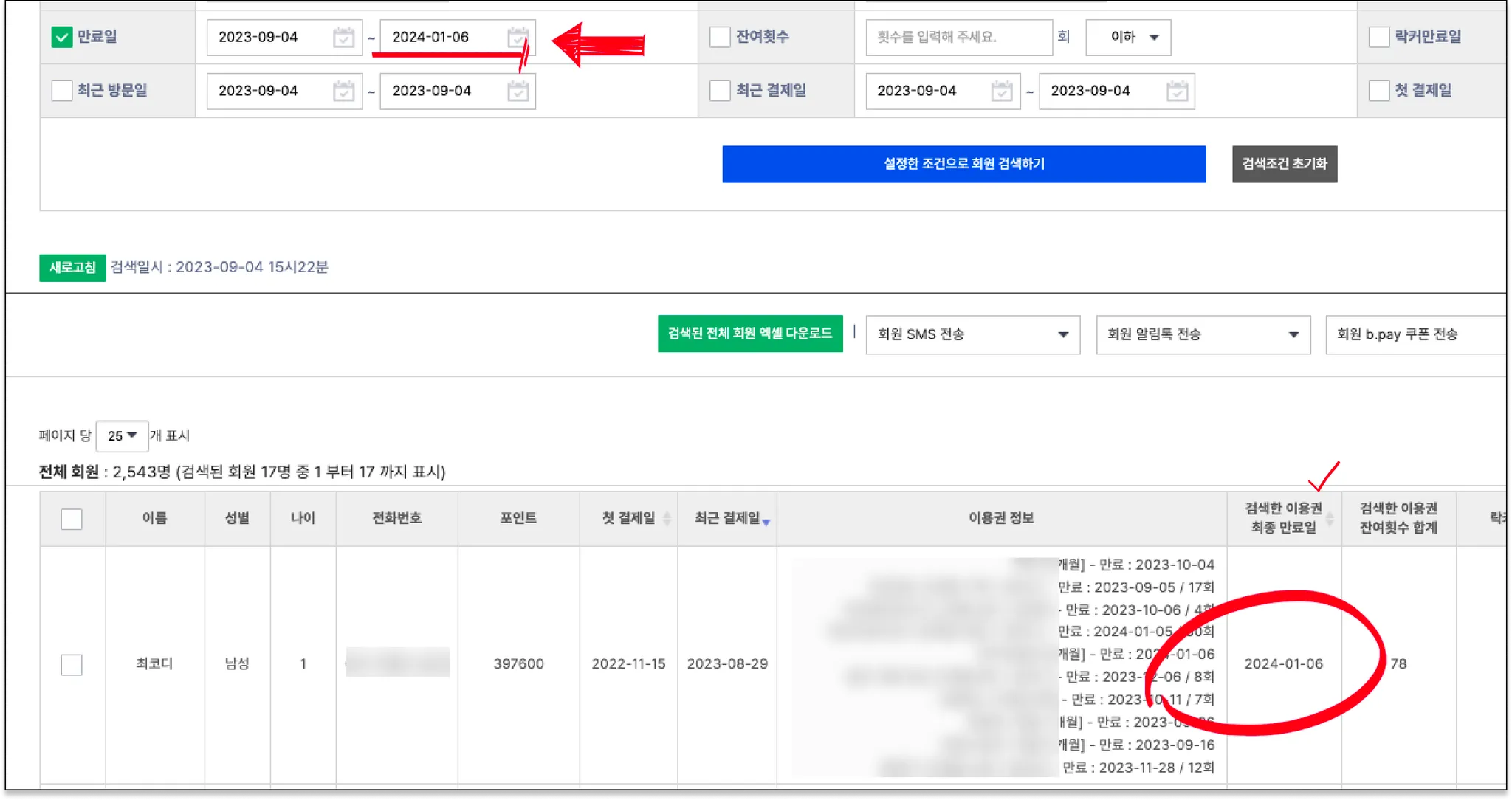 2. 회원 검색 > 만료일로 검색 시 최종 만료일이 +1일로 보이는 현상 개선