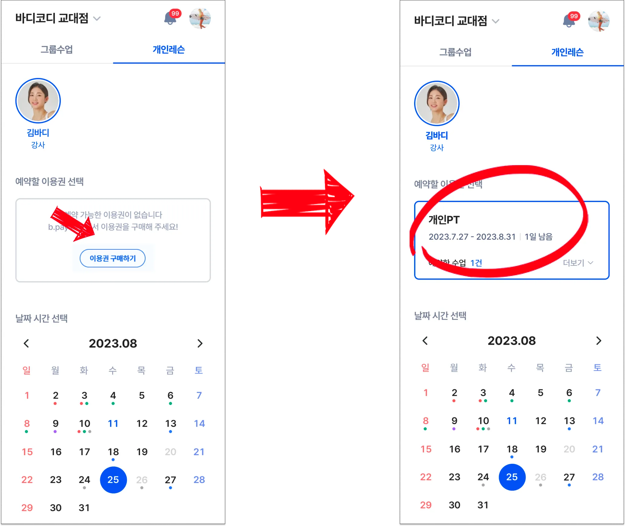 3. 회원앱 - 오늘이 이용 종료일인 이용권으로 예약 시 이용권이 없다고 나오는 현상 수정