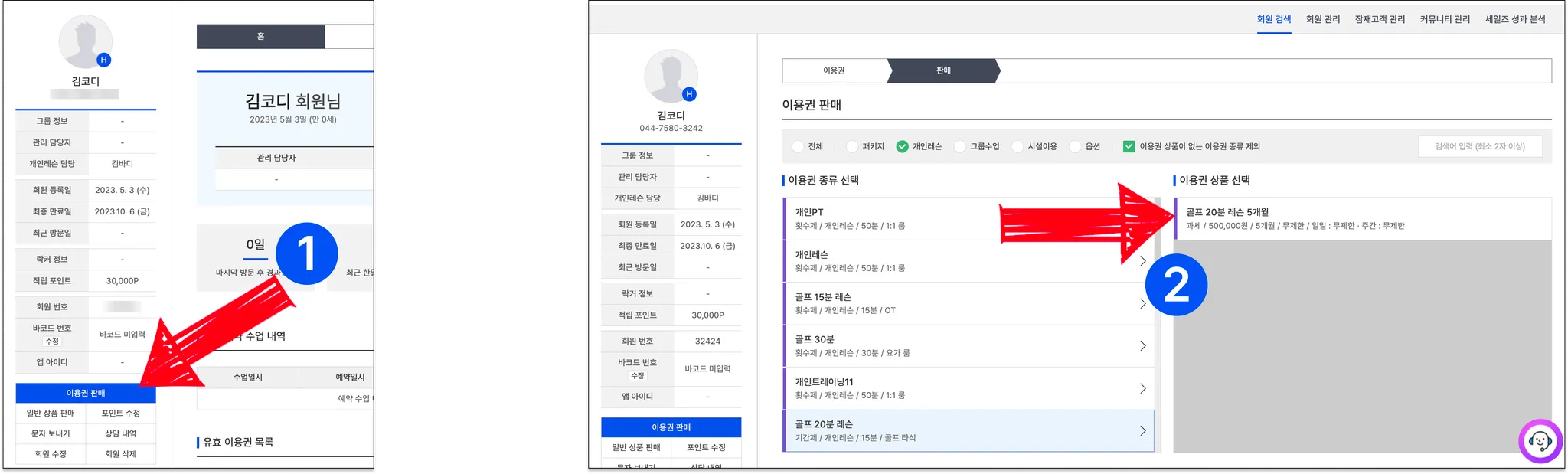바디코디에 등록한 회원 정보로 접속 후 이용권 판매를 눌러주세요.