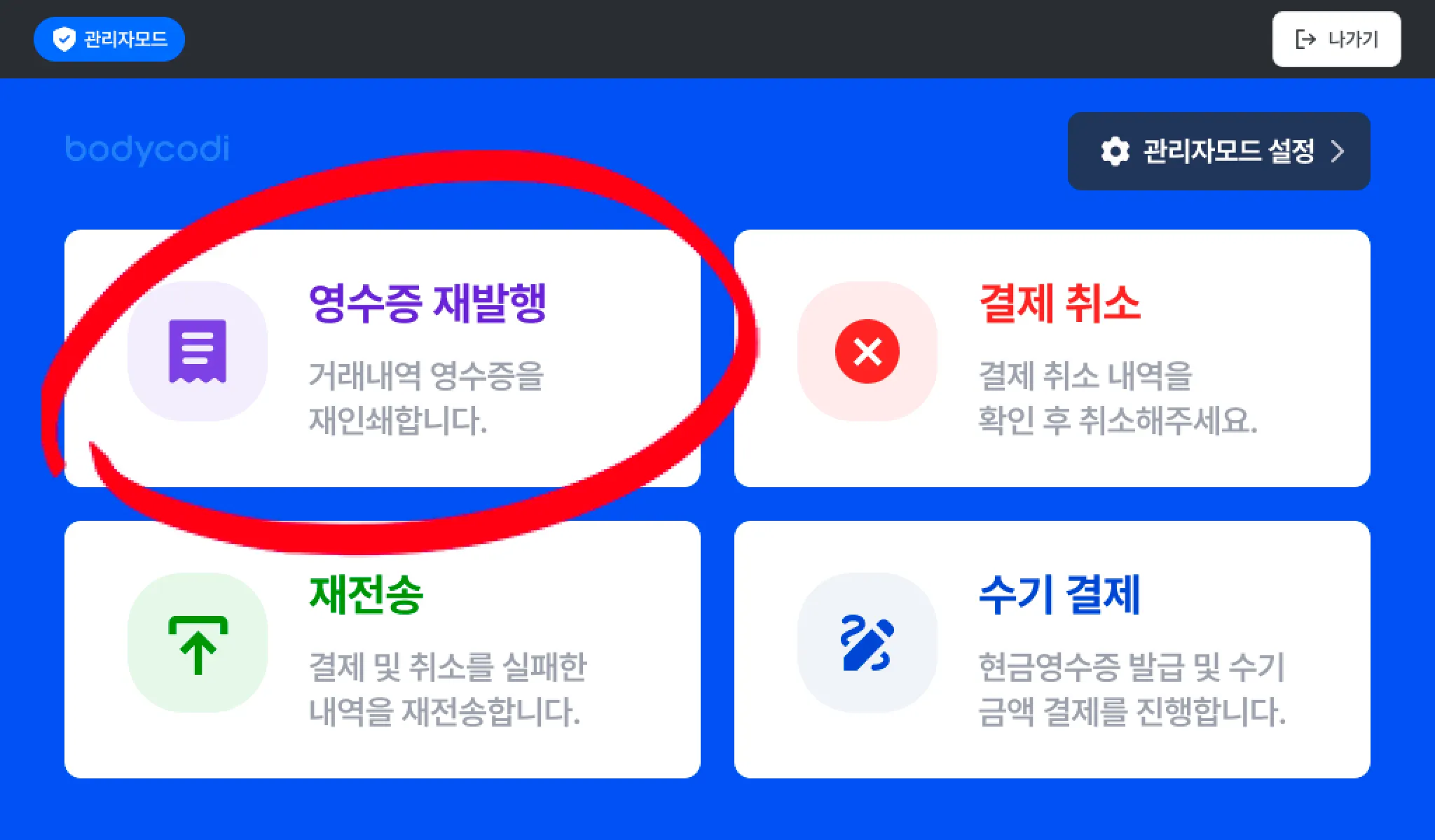 2. 바디코디 전용 POS기 영수증 재출력 기능