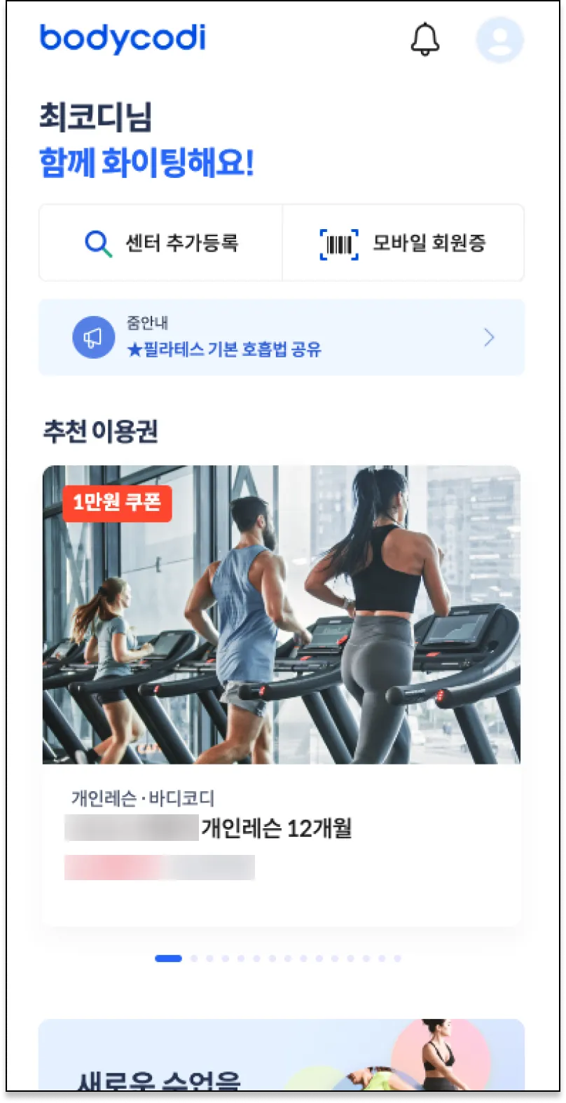바디코디 회원앱은, 가입한 센터와의 정보 연결을 위해 반드시 본인이 회원가입하고 사용해야합니다.