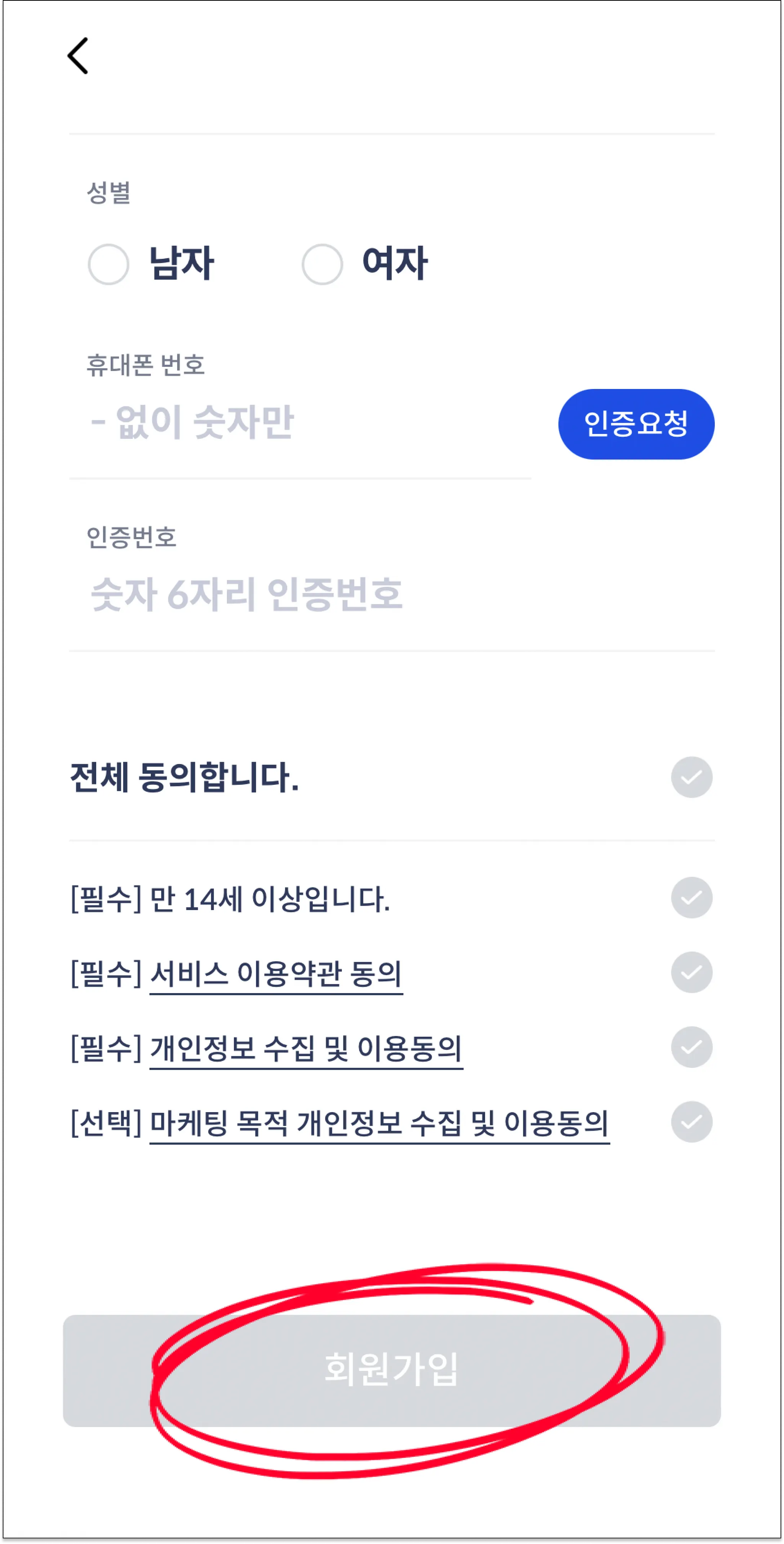 본인 확인을 위해 휴대폰 번호 인증이 필요하니 본인인증을 꼭 진행해주세요!