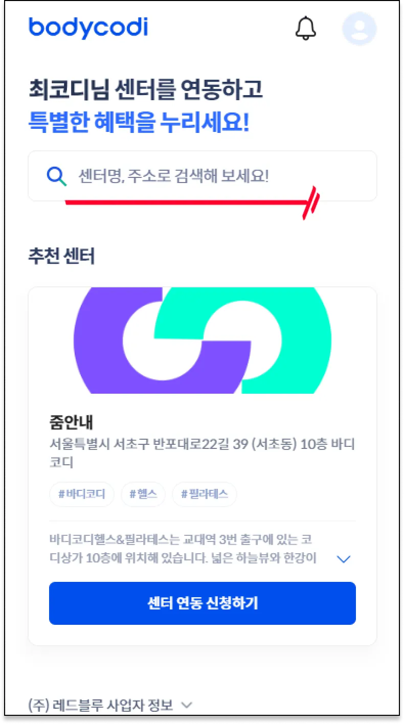 아래 보이는 검색창에 가입하거나, 이용할 센터를 검색해주세요.