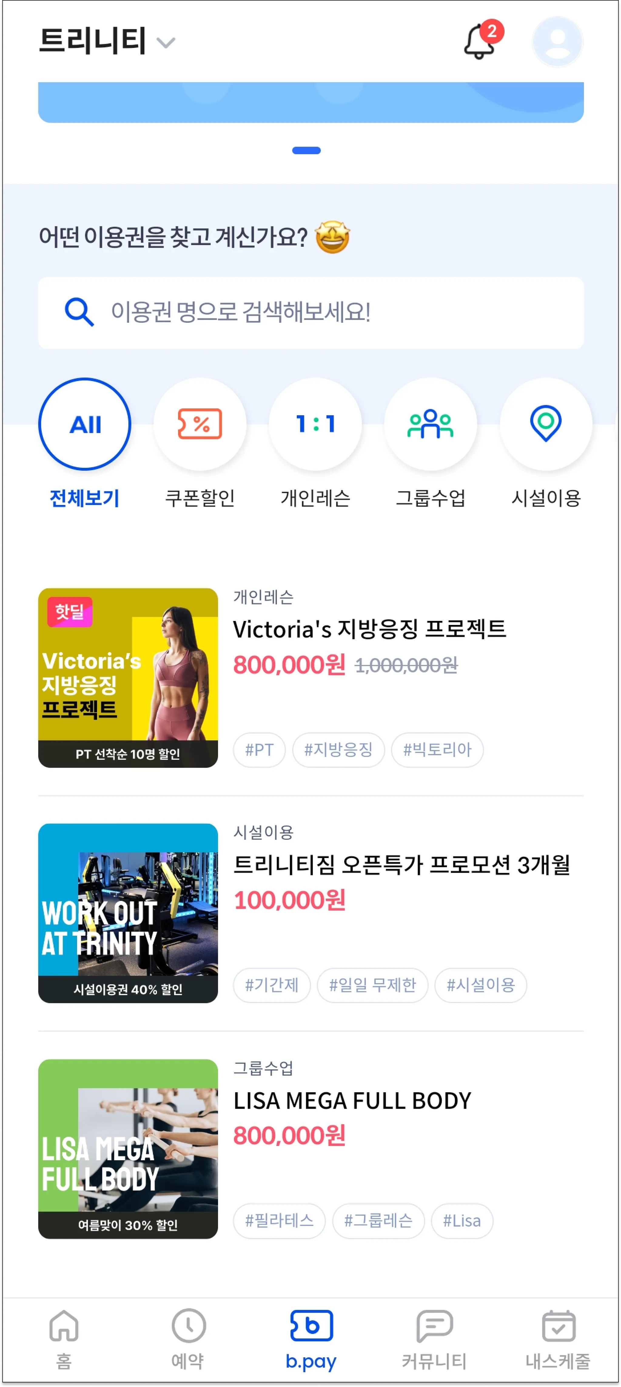 홈트강좌 영상이나, 바디프로필 촬영권, 여행상품 같이 특별한 이벤트 상품을 단독 또는 기존 회원권과 결합해서 판매해 보세요! 회원님들을 위한 다양하고 재미있는 상품으로 매출 증가에 기여해요!
