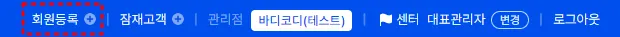 바디코디 관리자 프로그램에 로그인하면, 상단에 '파란색 바'가 보이실 거예요.