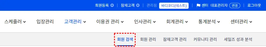 1) [고객관리] > [회원검색]으로 들어가주세요.